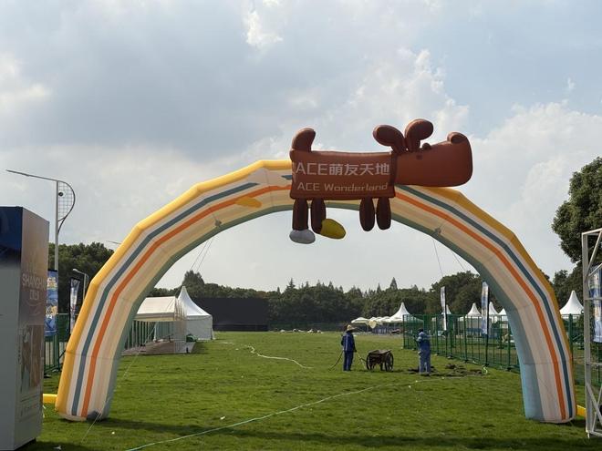 目前位于2号场一侧的大片绿地已经圈好了围栏,这个名为“ACE萌友天地”的场地是专为观众提供犬只活动和寄存服务。