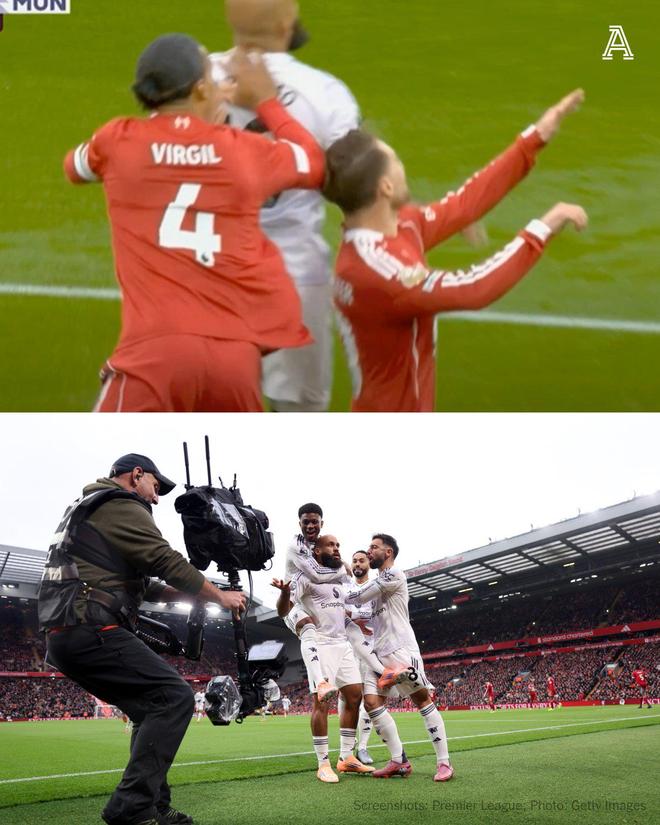 开场40多秒,利物浦中场争顶,范戴克的肘部击打到了麦卡利斯特的头部,后者倒地不起;但裁判示意比赛继续,曼联就是利用这个时间窗口由迪亚洛助攻姆伯莫破门。