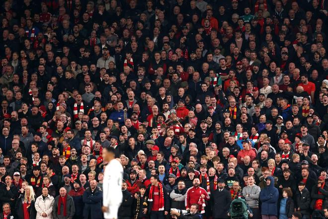 比赛还剩10分钟时,亚历山大-阿诺德替补登场引来了阵阵嘘声。他每一次触球,嘘声都更大。当他传球失误,以及在补时阶段传中球踢飞时,现场响起了讽刺的欢呼声。