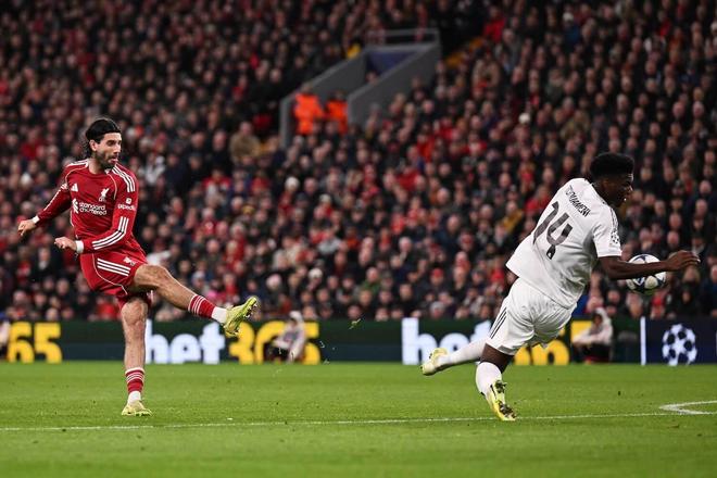 麦卡利斯特下半场的头球破门决定了比赛胜负,但皇马门将库尔图瓦的神勇扑救和一些拼死防守才避免了西班牙俱乐部遭受更大损失。皇马在比赛末段换上前利物浦后卫亚历山大-阿诺德,引发了安菲尔德球场全场震天的嘘声。