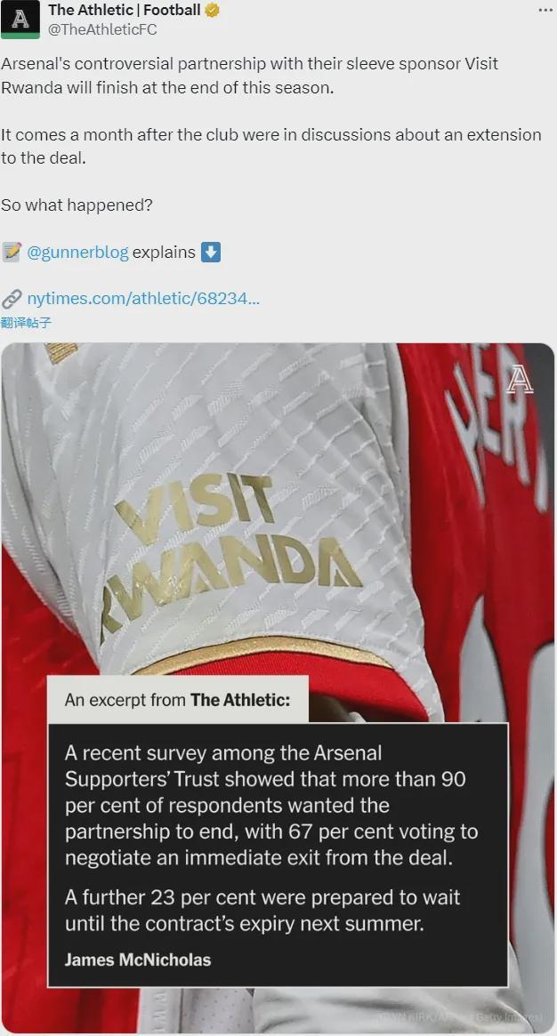 gunnerblog在TA上解释了阿森纳终止参观卢旺达袖管赞助的原因。