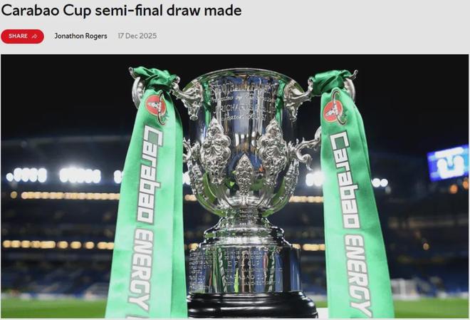 官方:阿森纳假如能在下周击败水晶宫,那么就将在卡拉宝杯半决赛中对阵切尔西。
